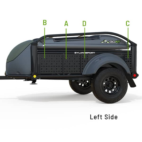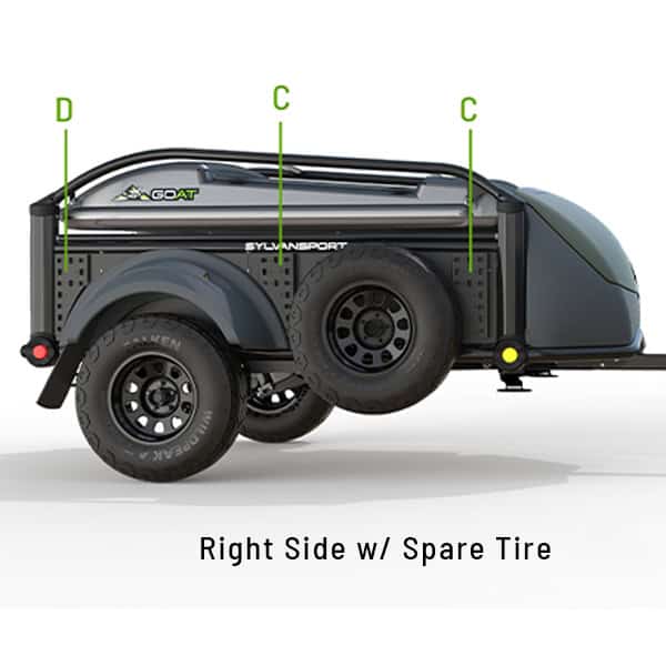 Full Kit includes for both sides of your GOAT with the spare tire mounted: Panel B (x1), Panel C (x1), Panel D (x3), Panel E (x2), and mounting hardware. Accessories not included.