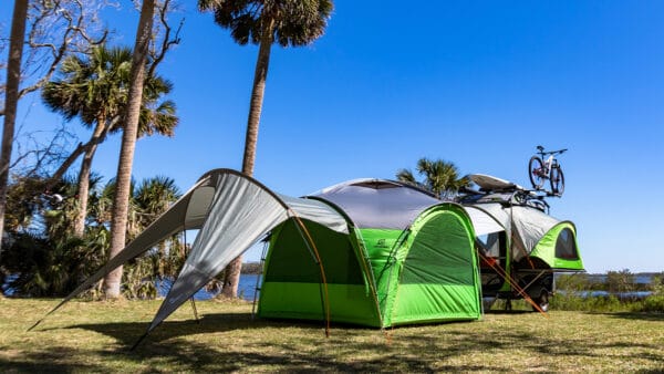 The GOzeebo is compatible with the GO or GOAT using the Breezeway Connector to create a continuous covered living area. And, the optional awning can be easily attached to any or ALL of the GOzeebo’s four sides. SylvanSport is all about compatibility, so you can use your camper’s popular accessories with the GOzeebo to organize, store, protect, and make it comfy. The GOzeebo is ready to be your new hang out.